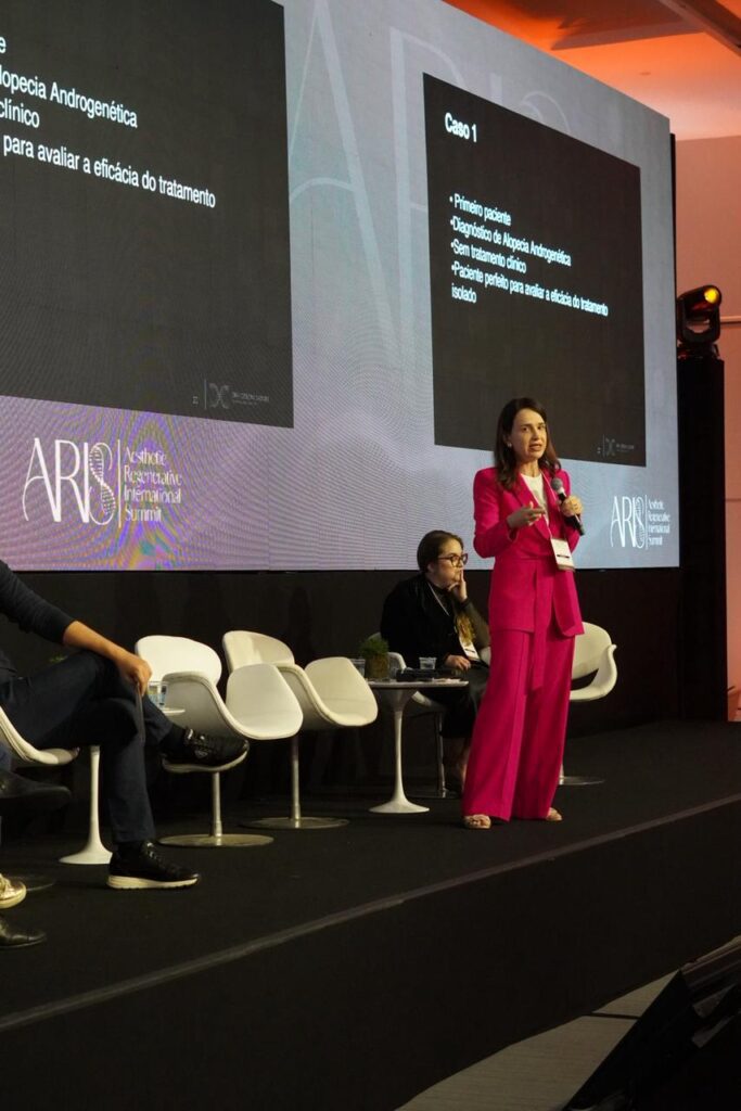 A dermatologista Débora Cadore, especialista em doenças capilares e do couro cabeludo, foi uma das palestrantes do ARIS Congress 2025 (Aesthetic Regenerative International Summit), realizado nos últimos dias 7 e 8 de novembro no Centro de Convenções Rebouças, em São Paulo. No sábado, em sua palestra, a médica catarinense abordou o tema “Uso de células da gordura no tratamento das alopécias”, apresentando o que a ciência revela sobre o assunto e como essas descobertas são aplicadas na prática clínica diária. Segundo a especialista, pioneira no mundo nesta técnica, o tema é fundamental, pois evidencia que já existem terapias regenerativas eficazes para doenças antes consideradas sem solução.